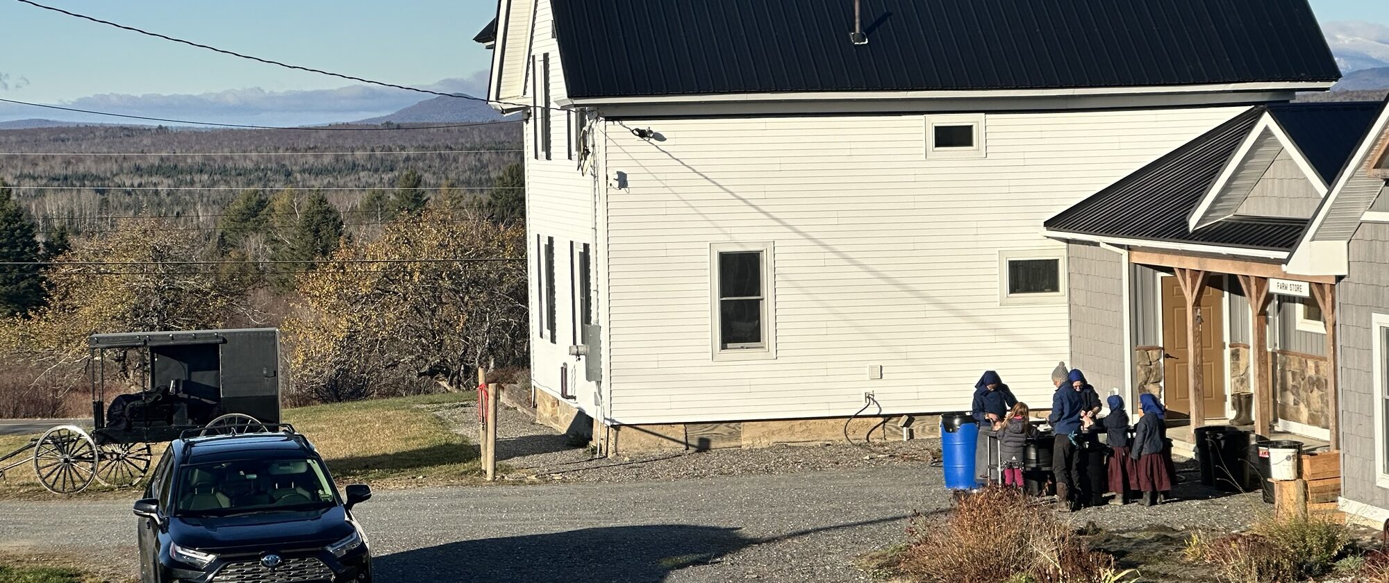 The Miller Family rarely travels as one. I assume this is a result of enjoying their home, and also because a crew that includes 9 littles spread across the last 10 years is tough to get out the door. We know when they travel, since they pass our Farm to get about anywhere, and often borrow our horsepower. It’s Church every-other Sunday, a few social trips a year and butchering days here at the Farm—the latter outnumbering the former.
